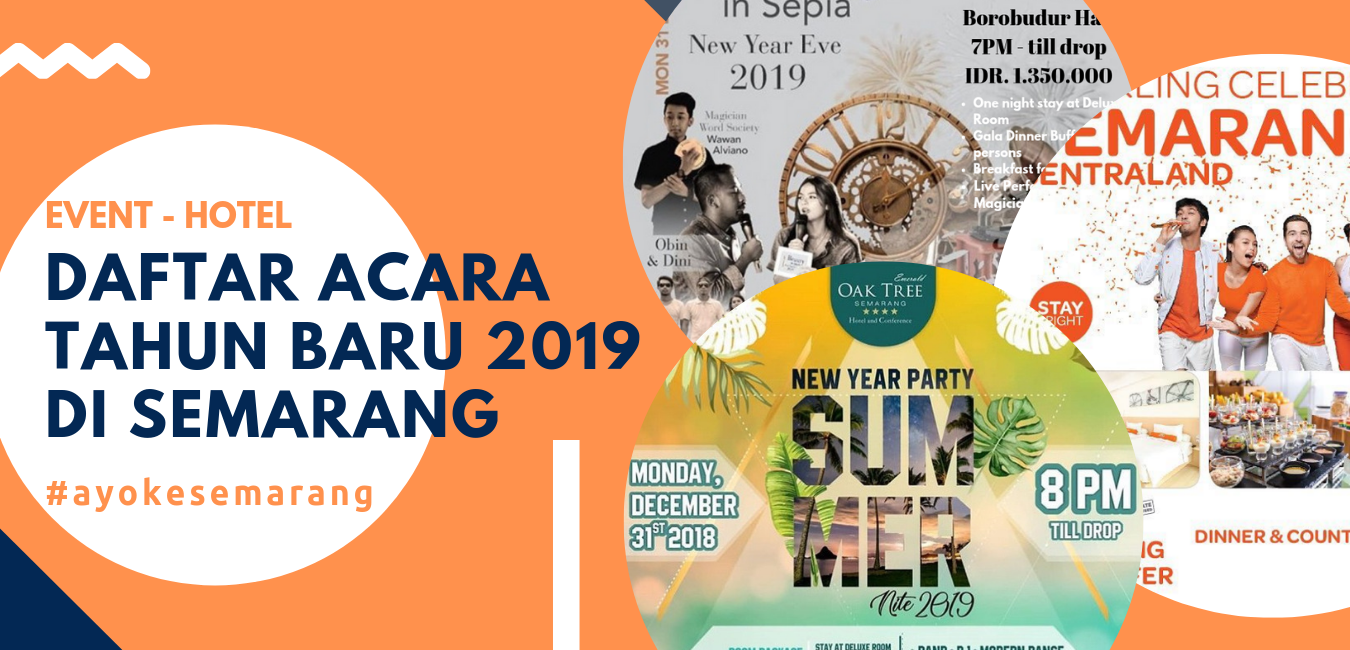 Menyambut Tahun Baru 2019, hotel-hotel di Semarang mengadakan event dengan beragam tema. Bagi Anda yang ingin menikmati momen pergantian Tahun Baru tetapi malas terkena macet karena biasanya warga Semarang akan tumpah ruah di jalan-jalan utama kota Semarang, Anda bisa mengikuti event yang ada di hotel-hotel berikut: